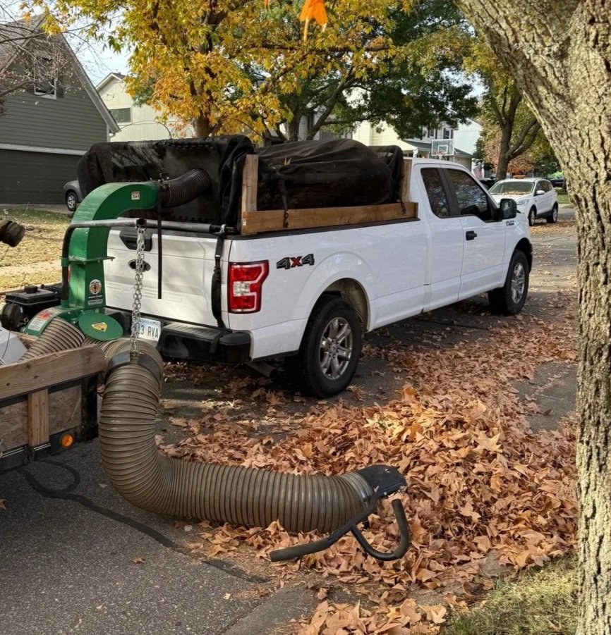 When heavier leaf buildup occurs (mid-to-late fall), thick layers can smother grass, block sunlight and air, trap moisture, and increase disease risk. At that point, we switch to full removal—blowing, raking, or vacuuming—to clear the lawn and protect turf health through winter.